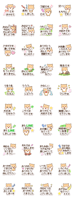 茶色い柴犬のスタンプです。丁寧な言葉や敬語を文字いっぱいに集めた、優しい、あたたかみのあるスタンプ。一度に気持ちを伝えられます。いぬ好きな方にぜひ。【かたこ】