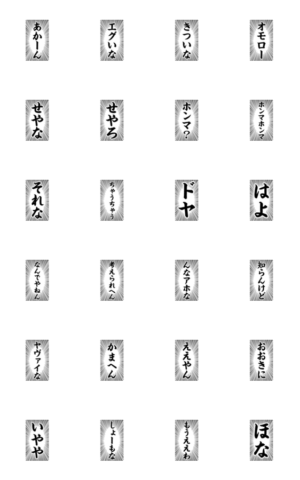 全画面/飛び出すスタンプ/ポップアップ/関西弁/大阪弁/毎日使える/日常会話/あいさつ/挨拶/大阪府/京都府/兵庫県/滋賀県/奈良県/和歌山県/ツッコミ/集中線/放射線