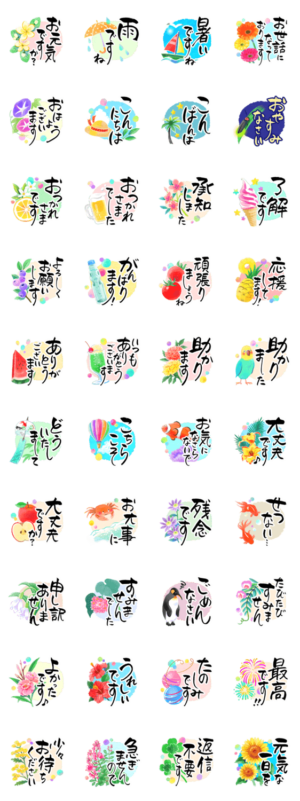 きれいな花と上品な夏モチーフ♪日常会話・仕事に使いやすい、敬語・丁寧語のでか文字です。大人の女性にぴったりの優しいパステルカラー♪母の日のプレゼントにも是非。