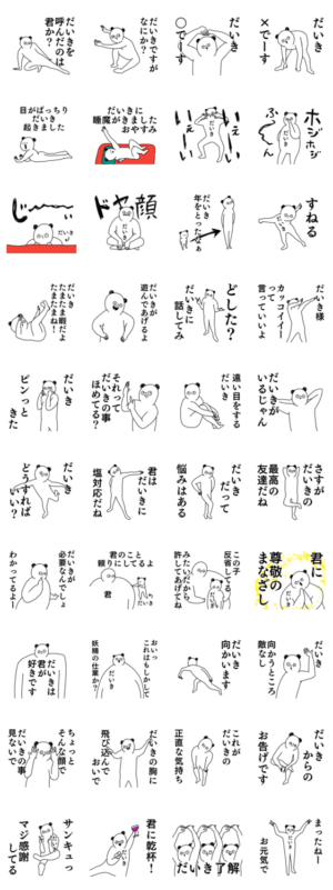 だいきくんが使えるスタンプです。ダイキ、大紀、大輝、大樹、大貴、大毅、大城、大揮、大己など。シュールで面白いバージョンです。