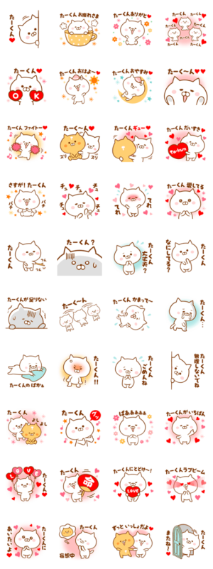 たく/たくや/たかし/たけし/たろう/たかお/たくみ/たかゆき/たかひろ/たかのり/たくろう 等、たーくんに送る名前・あだ名スタンプです。大好きな恋人、夫婦、友達に♥はちむー より発売