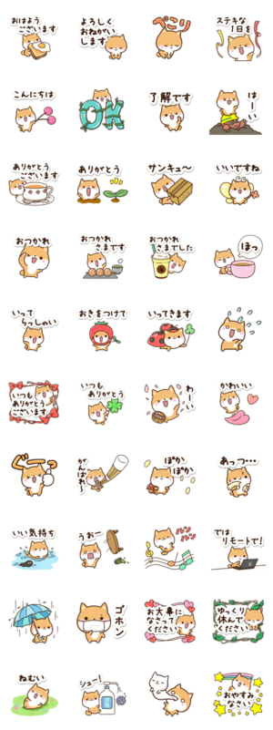 ちびシバ スタンプに書いてある文字一覧