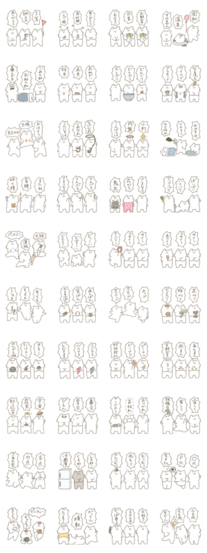 ちびっこしろにゃん三拍子 スタンプに書いてある文字一覧