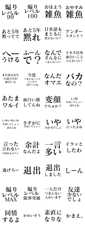 一言多い人いますよね?5年間黙れ!て思いません?一言多い/きもい/小学生/中学生/高校生/悪口/毒舌/むかつく/面白い/おもしろ/挑発する/刺激/煽り/毎日使える/若者/ネタアケジスタンプ♡ より発売