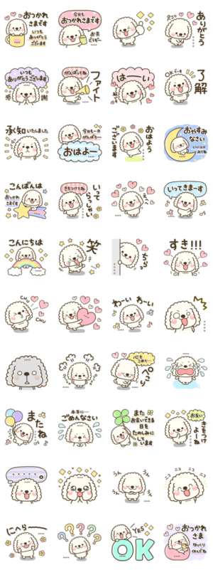 大人の日常のスタンプ。カスタムできます。白モコワンコが可愛いです♡