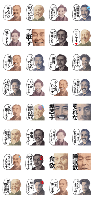 眠い時、ふざけたいときに送れるおもしろスタンプです。よく使いがちな便利なフレーズを入れてます。吹き出しは白で塗り潰し/偉人/お金/シュール/煽り/挨拶/カップル/家族/カボス太郎 より発売