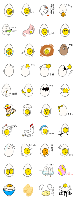 タマゴのスタンプ。卵、玉子、ゆで卵、味付け卵、卵焼き、スクランブルエッグ、卵かけご飯、イースター、ひよこ、ヒヨコ、ニワトリ、鶏...728 より発売