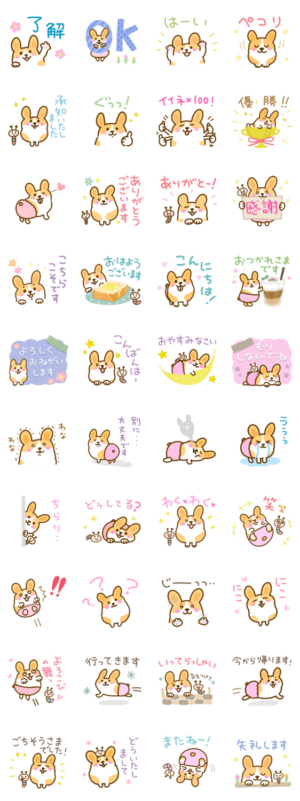 おむつ犬の敬語スタンプは、柴犬のたくさんの表情がくせになる可愛さです!たくさんの方に使えます!