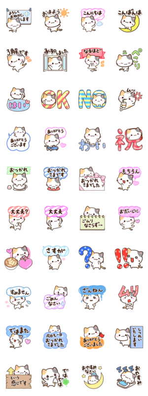 『小さい三毛猫』スタンプの毎日使える便利なネコスタンプです。丁寧な言葉や敬語など、友達や家族、仕事、学校でも使えます。ねこ好きな方にぜひ。【かたこ】