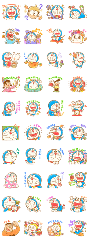 ドラえもん ほっこりスタンプは、秋バージョンなので今の時期にぴったりのスタンプです!!ドラえもんたちがとても可愛いです!