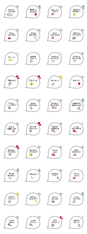 かわいい吹き出し風のスタンプ、文字も手書きでとてもかわいらしいです!