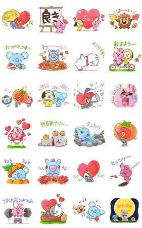 思わず心をくすぐる、ほっこりかわいいデザインのBT21が登場!ずっと使える、やさしく温かなBT21たちのスタンプでぬくもりトークを楽しもう♪BT21 より発売