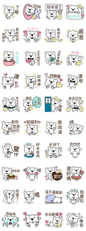 くますけの中国語版ベーシックなスタンプ♡よく使う言葉を厳選して入れました。バレンタインに使えるスタンプもあるよ♡