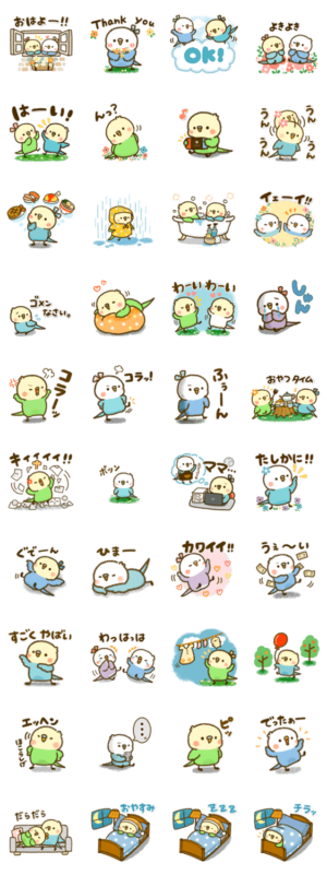 可愛いインコたちの日常で使えるスタンプです。ゆずぴよ より発売