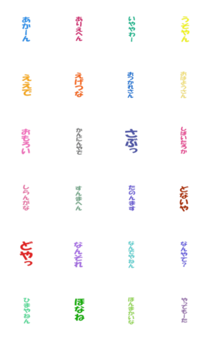画面いっぱいにデカ文字関西弁が落下するポップアップスタンプです。G-flash より発売
