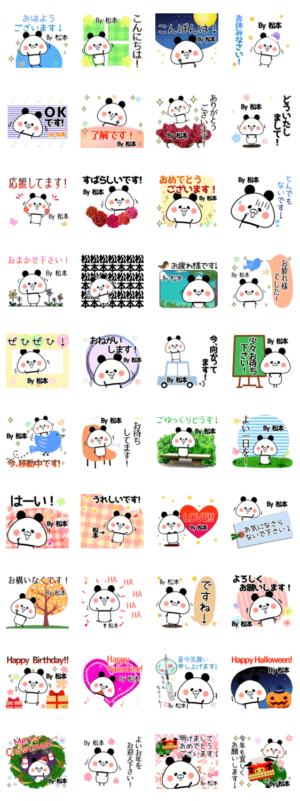 名字(苗字)が松本(まつもと,まつほん)さん専用のパンダの敬語入り名前スタンプです。クリスマスと年賀状(お正月)挨拶入り。松本(マツモト)さんへのプレゼントにもどうぞ。