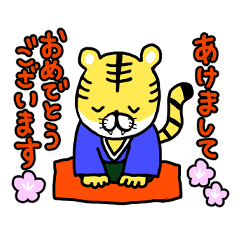 あけましておめでとうございます。今年もよろしくお願いします。年始の挨拶用、2022年干支の寅(トラ)スタンプ。ぜひご活用ください。あけおめ、ことよろダムダム より発売