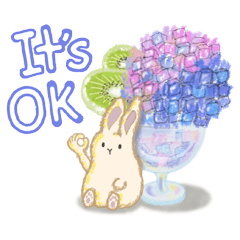 夏のアジサイとスイーツが大好きなうさぎと猫。 日常の挨拶。 お楽しみください!