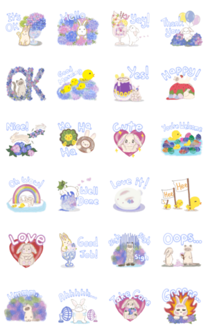 夏のアジサイが大好きな可愛いうさぎと猫 スタンプ画像一覧