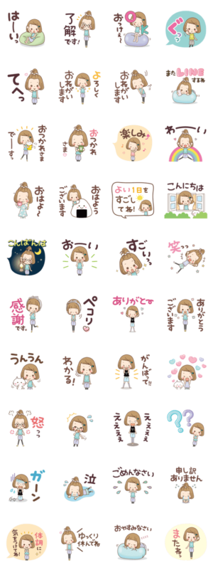 前髪短めな女の子のシンプルで毎日使える【でか文字】スタンプです。