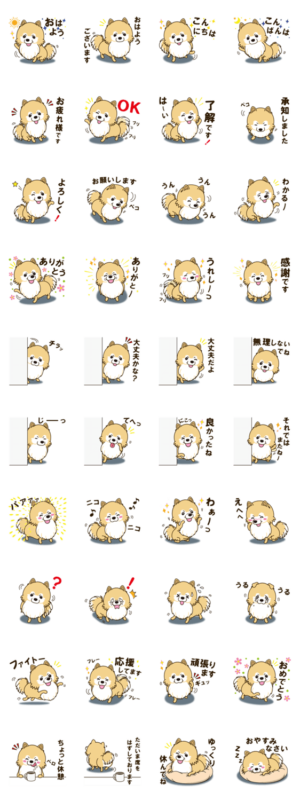 ポメラニアンのスタンプです。 友達や家族の日常会話で気軽に使ってトークを楽しんでください!