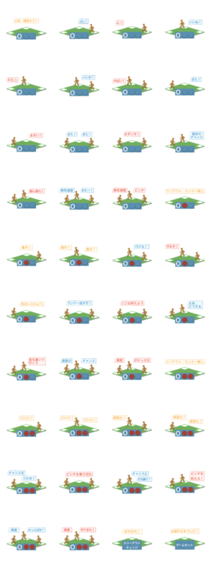 野球の試合を観に来れない家族や友だちに、ランナーやアウトカウントを伝えるスタンプを使って実況中継をしよう!プロ野球、高校野球、少年野球、ソフトボールの応援にも!