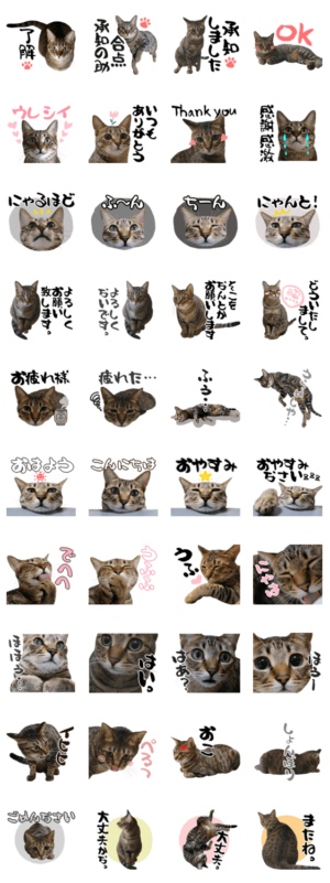 YouTubeねこ猫まんまの主人公キジトラ猫クゥちゃんをモデルにした、使える、見てすぐわかるデカ文字スタンプです(=^・^=)