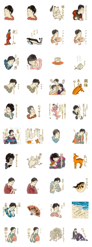 浮世絵、鳥獣戯画、花札をモチーフにした和風のスタンプヨ〜