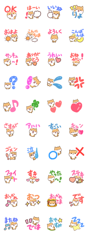 豆柴の『ちびシバ』スタンプ。毎日よく使う言葉や文字を大き目にしました。どなたにでも使いやすいイヌスタンプです。いぬ好きな方、柴犬を飼っている方にぜひ。【かたこ】