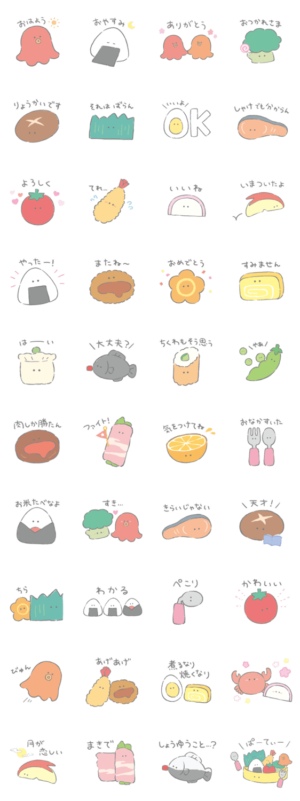 おにぎりや、お弁当の具のスタンプは斬新、でも可愛い。ふんわりした感じもいい。