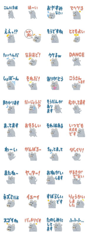 はいいろネズミ(でか文字) スタンプ画像一覧