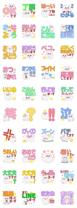 ポメラニアン「ぽちゃん」の大きめ文字で読みやすく、日常に使えるスタンプです!