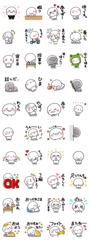 学生さんに使いやすい内容を厳選したしろまるの特別なスタンプです。【作:いしいともこ】
