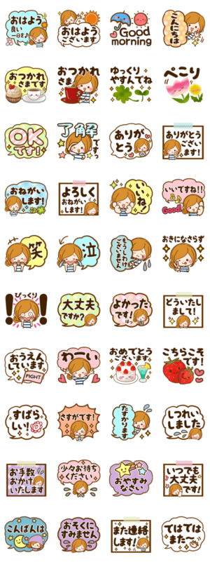 コミュニケーションを円滑にする!コミュ力がUPするスタンプです♪敬語多めで仕事、ママ友、PTA、役員、上司に先輩と幅広く使えて便利です。「ほのぼのカノジョ」シリーズ