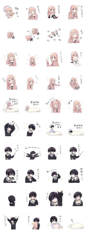男の子と女の子です。マスクしてます。スタンプで会話を更に楽しんでみましょう。
