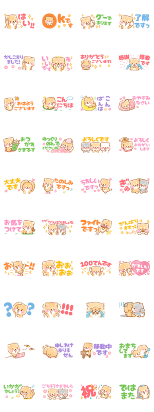 省スペース❤️いやしばいぬ❤️ゆる敬語 スタンプに書いてある文字一覧