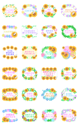好きなメッセージを入力♥フラワー/ヒマワリ/ほんわか/かわいいお花畑スタンプ/承知いたしました/了解です/ありがとう/よろしくお願いします/お大事にして下さい/おしゃれ 現在この商品は一部のスマートフォン版LINE 10.3.0以上のトークルームでのみ使用できます。動作環境の最新情報はヘルプをご確認ください。mamama-chin より発売