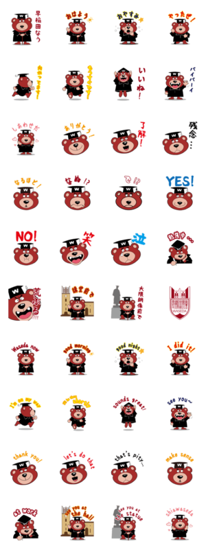 早稲田大学公式 〈ワセダベア〉 スタンプ画像一覧