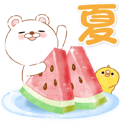 暑い夏をゆるい白くまのスタンプで涼しくしてください。文字も大き目(でか文字)なのでみやすくなってます。大人可愛いひよことゆるいうさぎも一緒です♪
