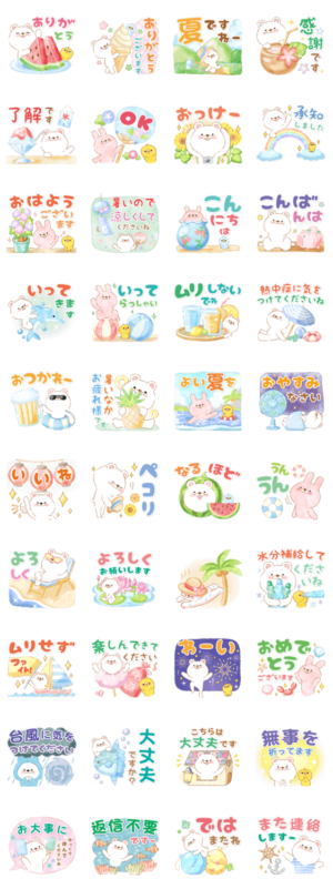夏の毎日に☆ゆるっくまのきづかい敬語 スタンプ画像一覧