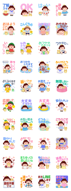 ちょっと太めの女の子「でぶりん」の夏の日常に使えるスタンプです!