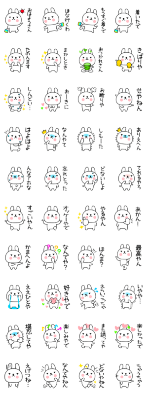 しろくてまるいウサギ:うさぎのキャラクターの関西弁:かんさいべんの毎日使える日常会話のスタンプです もるきゅた作もるきゅた より発売