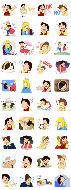 世代を超え多くの人々に愛される名作「アルプスの少女ハイジ」のスタンプがLINEに登場!ハイジ達のいろいろな表情が楽しめるよ♪(株)サンクリエート/瑞鷹(株) より発売