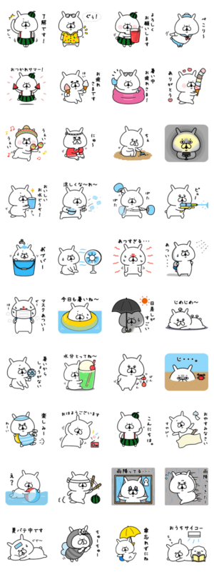 ゆるうさぎの夏のスタンプ第5弾!暑い夏をゆるうさぎと一緒に乗り切ろう!家族や友達、彼氏彼女や先輩後輩との夏の日常トークにどうぞ。