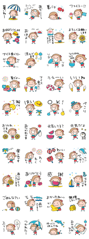 リボンのマルン。夏大好き編。「暑いね〜」「夏バテ」から「涼んでます」まで。夏の季節の日常会話を楽しもう。家族、学校、お仕事でも。