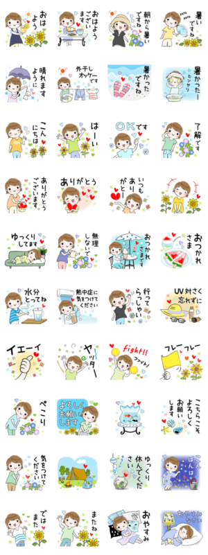 いよいよ夏の暑さ到来ですね。夏に向かって毎日を元気に過ごせる使いやすいスタンプです。