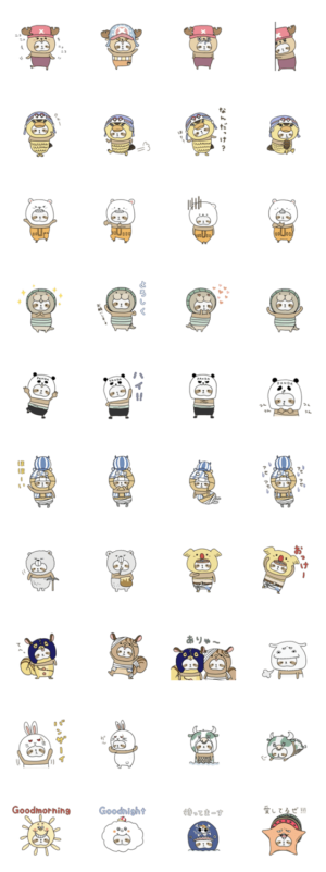 ちょこっと足りないナマケモノ期間限定コラボ.チョッパー,カルー,ベポ,クンフージュゴン,パンダマン,クマシー,ハイキングベア,ミノコアラ,リスキー兄弟,ラパーン,モームetc