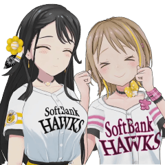 福岡ソフトバンクホークス公式スタンプ、今回はバーチャルYouTuberの鷹観音海、有鷹ひなのスタンプが登場☆福岡ソフトバンクホークス より発売