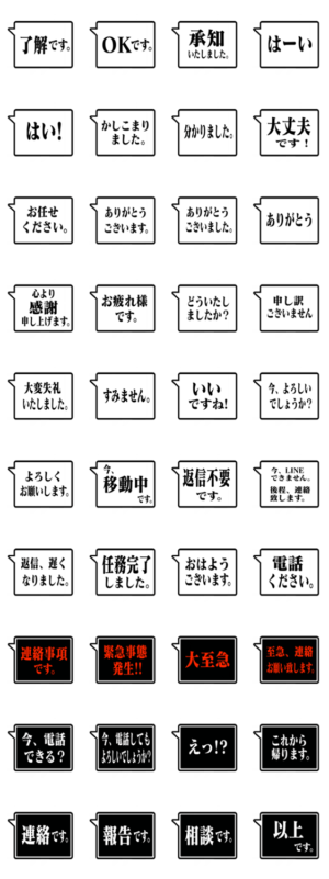 毎日、仕事、ビジネスにつかえるスタンプ/シンプル/上司/後輩/部下/同僚/敬語/日常会話/即レス可能/ビジネス用語/挨拶/丁寧/大人/友達/恋人/吹き出し/文字のみ/でか文字/あんじープロジェクト より発売