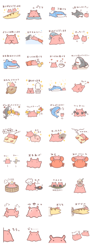 丁寧で使いやすい♪深海生物のメンダコちゃん。イカさん、サメさん、ジンベエザメさん、エビさんカニさん(うまい)、ウツボさん(ながい)、アンコウさんもいるよ。